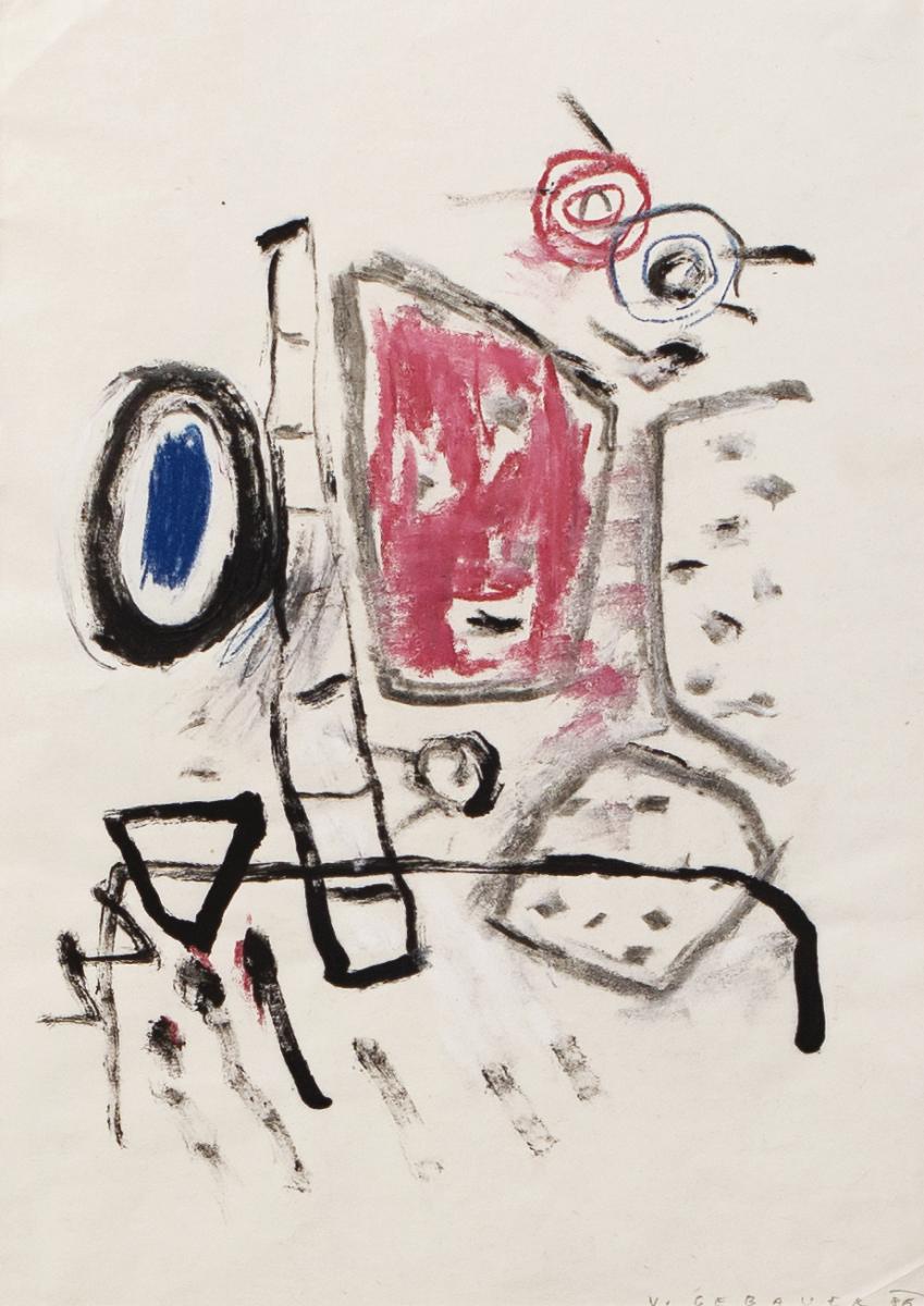 pastel, tuš, papír, 1986, 29,7 x 20,8 cm, sign. PD V. Gebauer 86, papírová pasparta, u okrajů papír pokrčený, papírová pasparta místy ušpiněná, Antiqari.at Radhošťská, antiqari.at Radhošťská, malíř a grafik, absolvent ateliéru Františka Jiroudka na pražské AVU