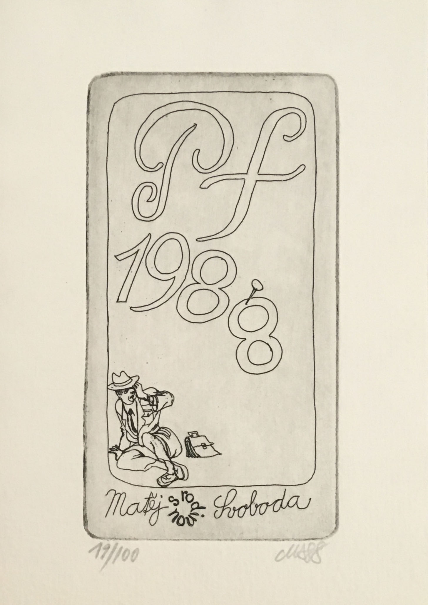 lept, 1988, 11 x 6 cm, PD monogr. MS 88, č. 19/100, the disciple of prof. V. Tittelbach and L. Cepelak at The Academy of Fine Arts in Prague, member of UVU, founder of the group ´68 pod plachtou´ and Tolerance, chairman of The Association of Free Graphic