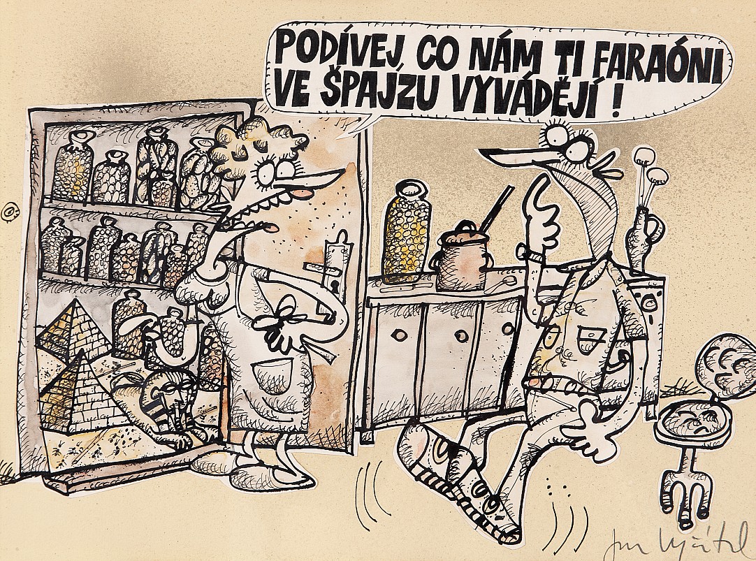 akvarel, tuš, koláž, papír, 28,5 x 38,5 cm, sign. PD Jan Vyčítal, rám