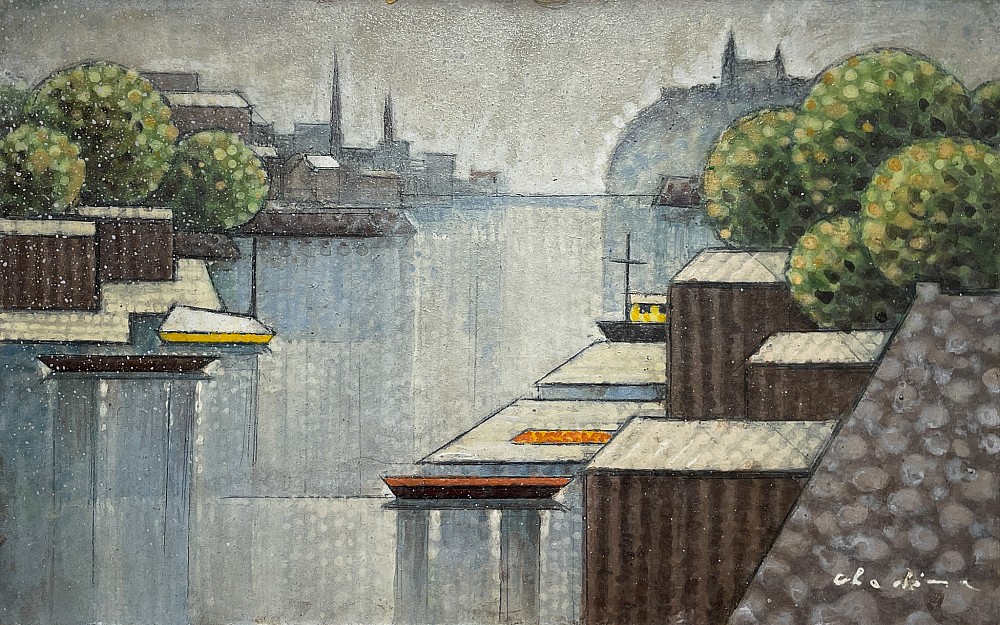 olej, lepenka, 40 x 59 cm, sign. LD František Říha, rám, studied Architecture at The Czech Technical University in Prague, the disciple of prof. C. Bouda, K. Lidicky and M. Salcman at The Faculty of Education - Charles University in Prague