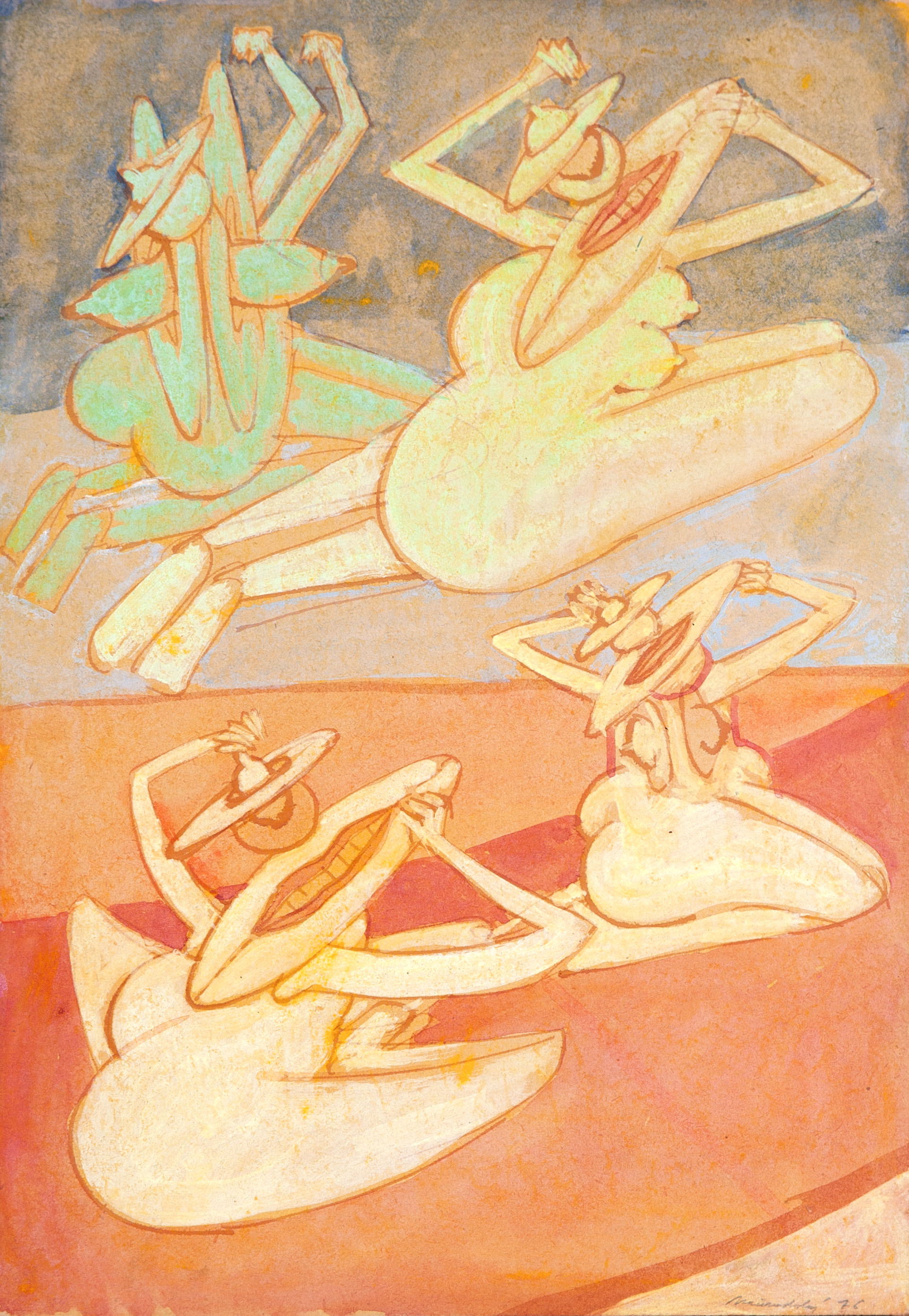 kvaš, papír, 1976, 42 x 29,5 cm, sign. PD Načeradský 76, mimořádný kreslířský talent Načeradskému umožňoval výtvarně zpracovávat náměty od vážných až po vyloženě groteskní, jak vidíme na předloženém díle. Jeho vysoký intelekt v kombinaci s malířským a kreslířským mistrovstvím ho předurčovaly k pedag…