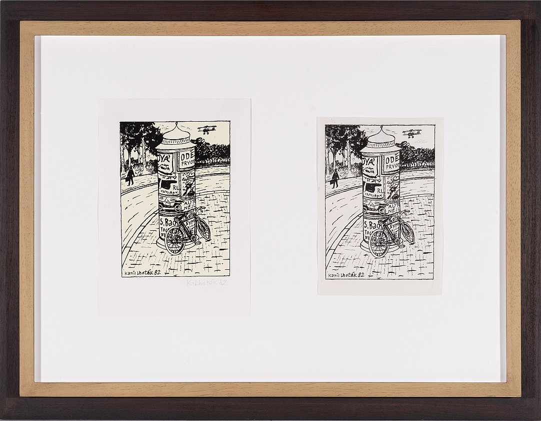 přípravná kresba tuší, papír a serigrafie, 1982, 21 x 15 cm, sign. PD Lhoták 82, rám, dílo, které obohatí každou uměleckou sbírku - dílo významného českého malíře, grafika a ilustrátora, člena Skupiny 42, jenž patří mezi nejznámější osobnosti českého umění II. poloviny 20. století. Originalita Lhotá…