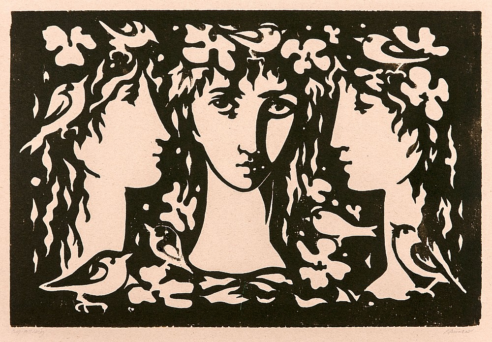 linoryt, 16,1 x 10,7 cm, sign. DU L. Jiřincová, Provenance: Antiquarian Ostrovní, the disciple of prof. T. F. Simon