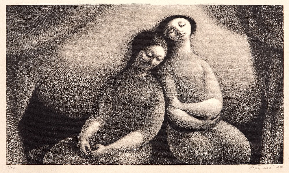 litografie, 22 x 12 cm, sign. PD L. Jiřincová, the disciple of prof. T. F. Simon
