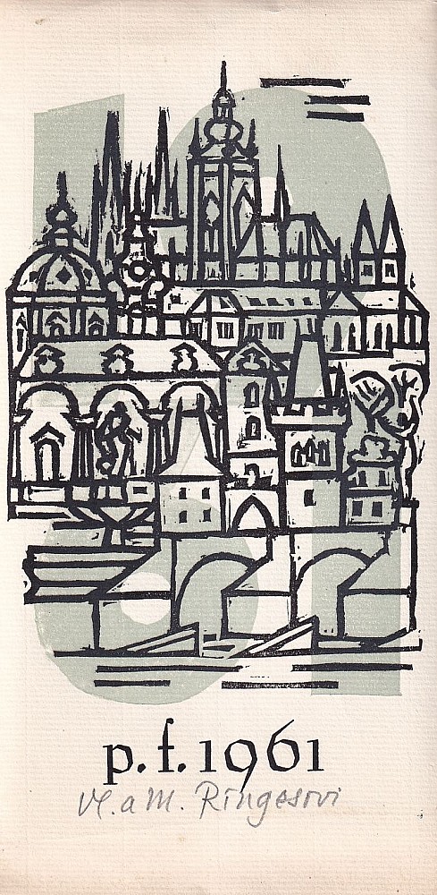 litografie, 1960, 17 x 11,5 cm, sign. UD V. a M. Ringesovi, Provenance: Antiquarian Dlážděná, the disciple of prof. J. Benda and F. Kysela at The Academy of Arts, Architecture and Design in Prague, member of JUV, SVUM in Hodonin