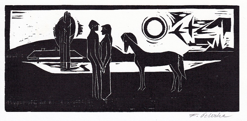 dřevoryt, 1964, 21 x 8 cm, sign. LD Vl. Ringes, Provenance: Antiquarian Dlážděná, the disciple of prof. J. Benda and F. Kysela at The Academy of Arts, Architecture and Design in Prague, member of JUV, SVUM in Hodonin