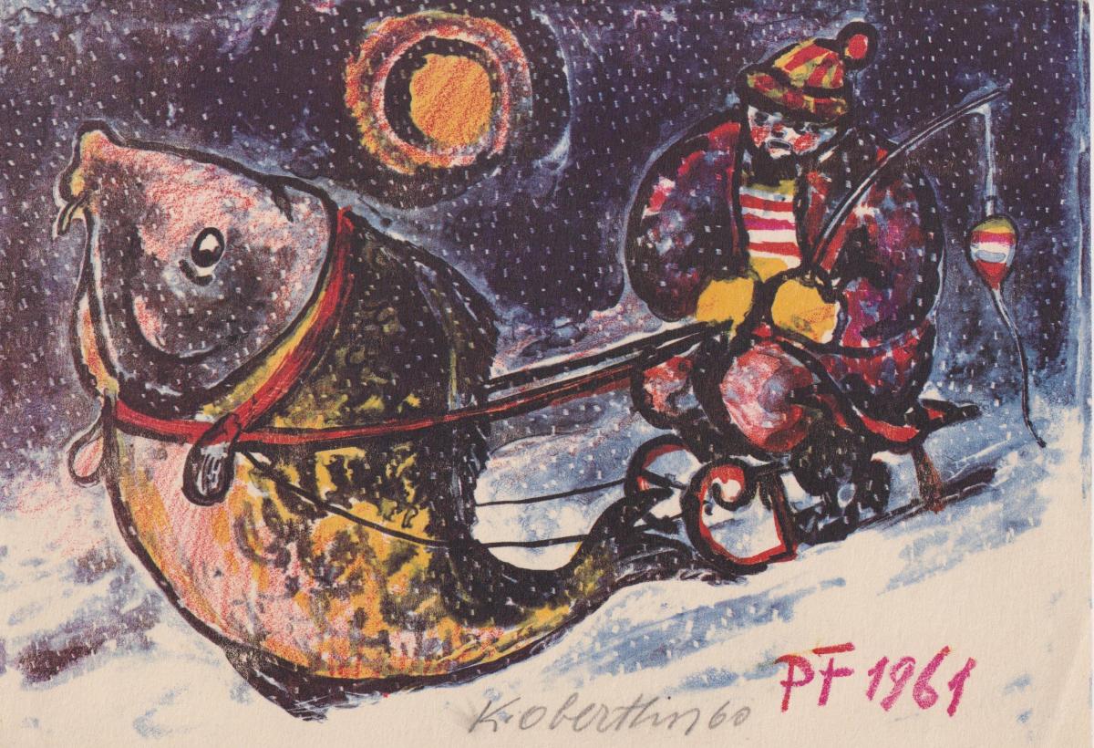 litografie, 1959, 17,4 x 12 cm, sign. DU K. Oberthor, na druhé straně věnování: Mnoho úspěchů Vám a Vaši ctěné rodině přejí Marie a Karel Oberthorovi. Praha 2. ledna 1960, PF 1960, na papíře skvrnky, Provenance: Antiquarian Dlážděná, the disciple of prof. I. Kulec at The Ukrainian Academy of Fine Ar…