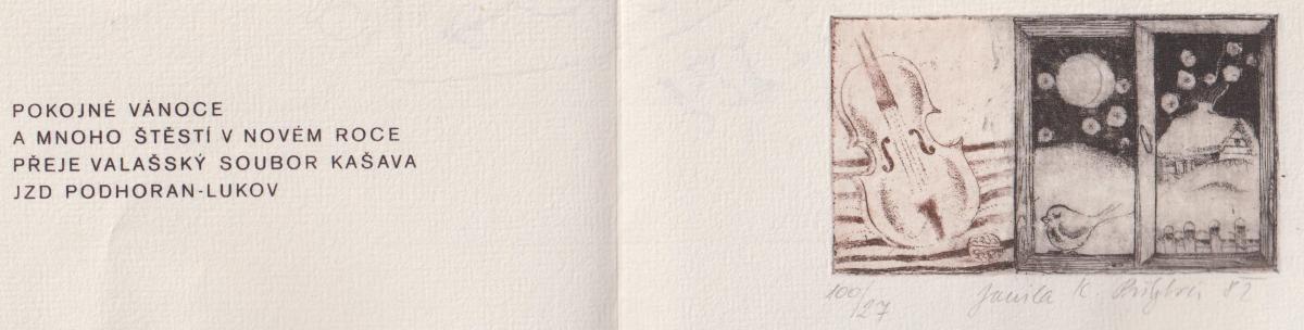 litografie, 1987, 5 x 3 cm, sign. UD J. Poláček 87, Aantiqari.at Radhošťská,