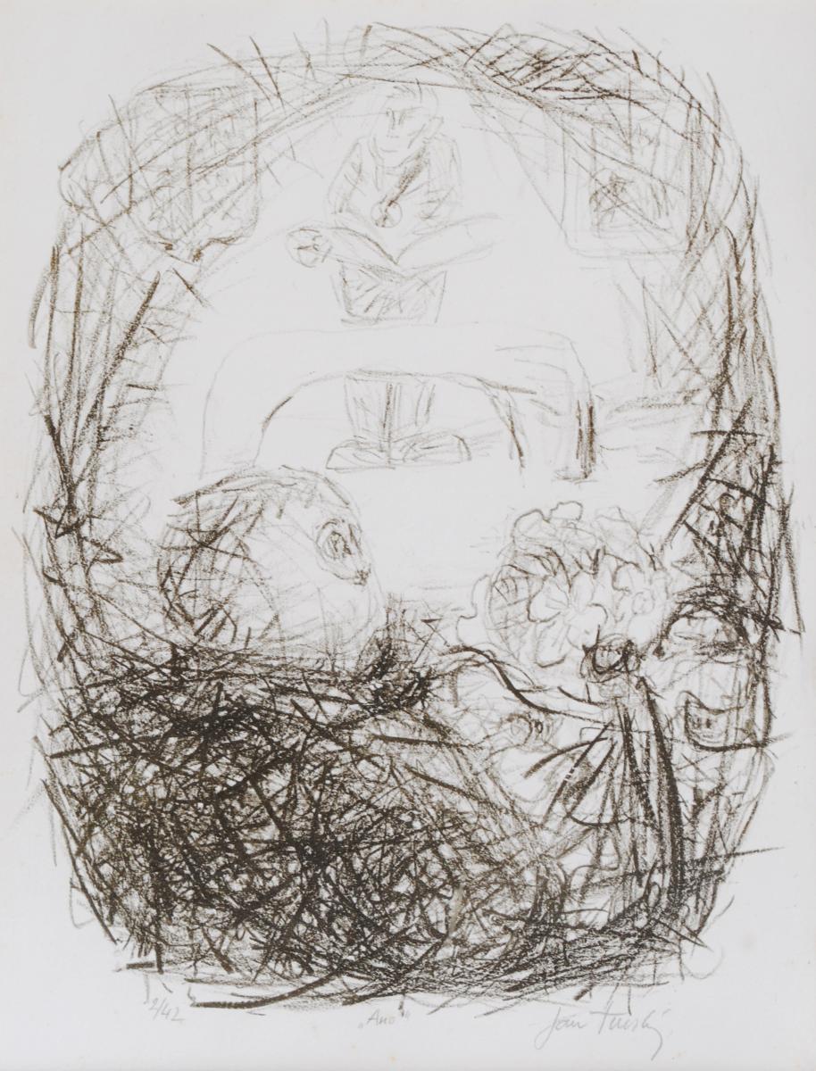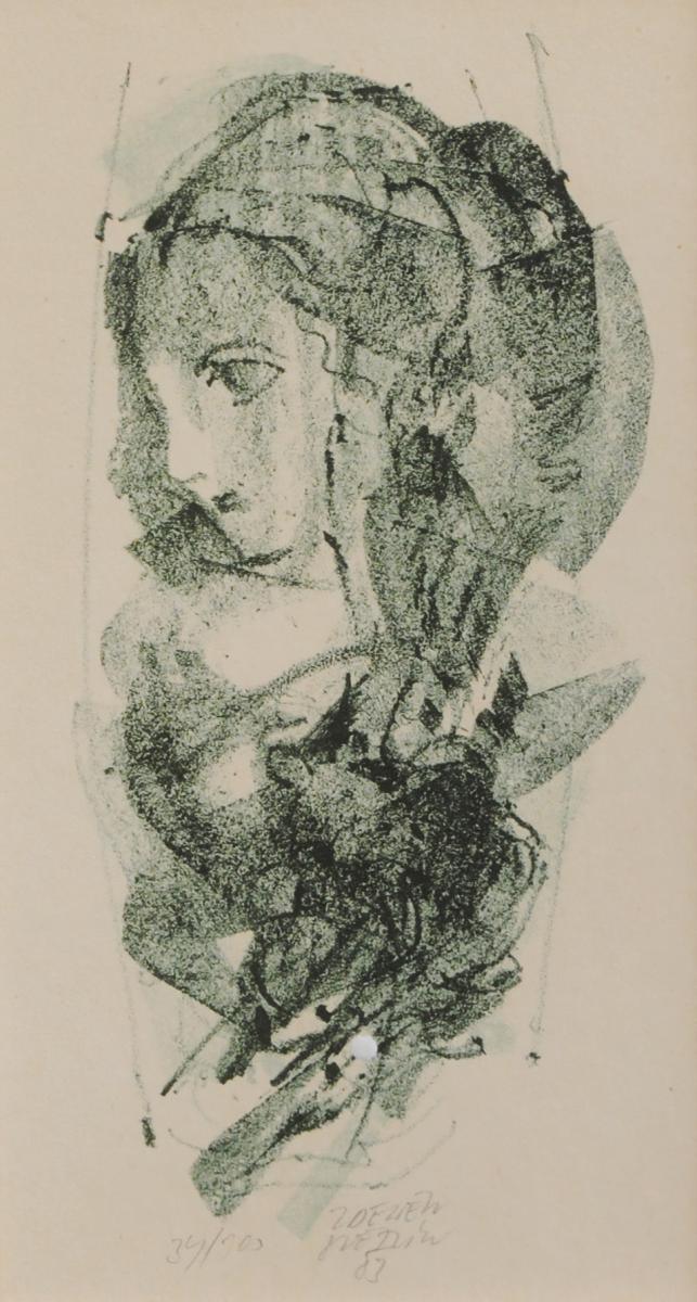 litografie, 1992, 25 x 17 cm, sign. PD, rám, č. 42/42, napapírové paspartě pár drobných skvrn, Aantiqari.at Radhošťská,