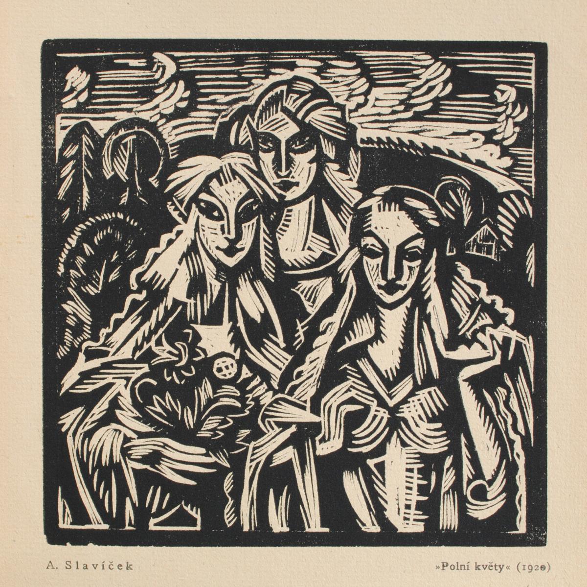 dřevoryt, 1920, 15 x 14,9 cm, Život, příloha, papír zažloutlý, na okrajích otrhaný, Aantiqari.at Radhošťská, , the disciple of prof. Dite, Wurzl and V. H. Brunner, member of The Umelecka beseda and SVU