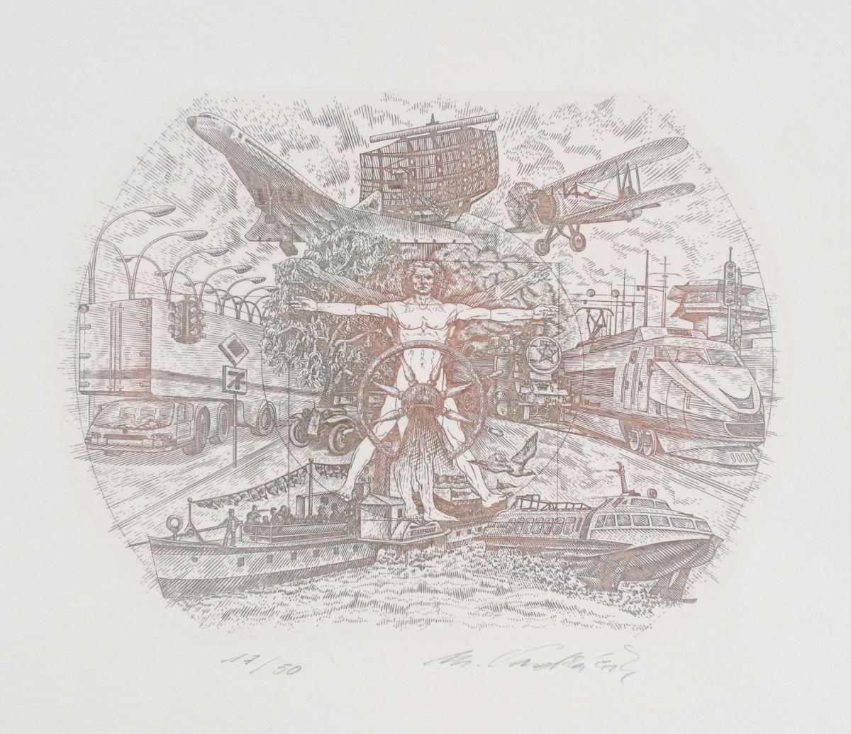 suchá jehla, lept, 1991, 10,7 x 8,3 cm, sign. PD Sozanský 91, rám, Aantiqari.at Radhošťská, , the disciple of prof. F. Jiroudek, member of The Hollar Association of Czech Graphic Artists