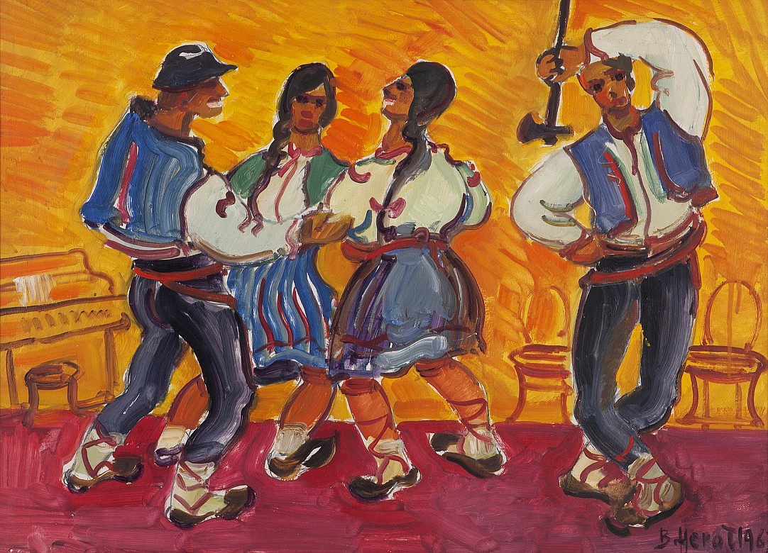 tempera, běloba, papír, 1967, 44 x 61 cm, sign. PD B. Herot 1967, rám, Provenance: Antiquarian Dlážděná