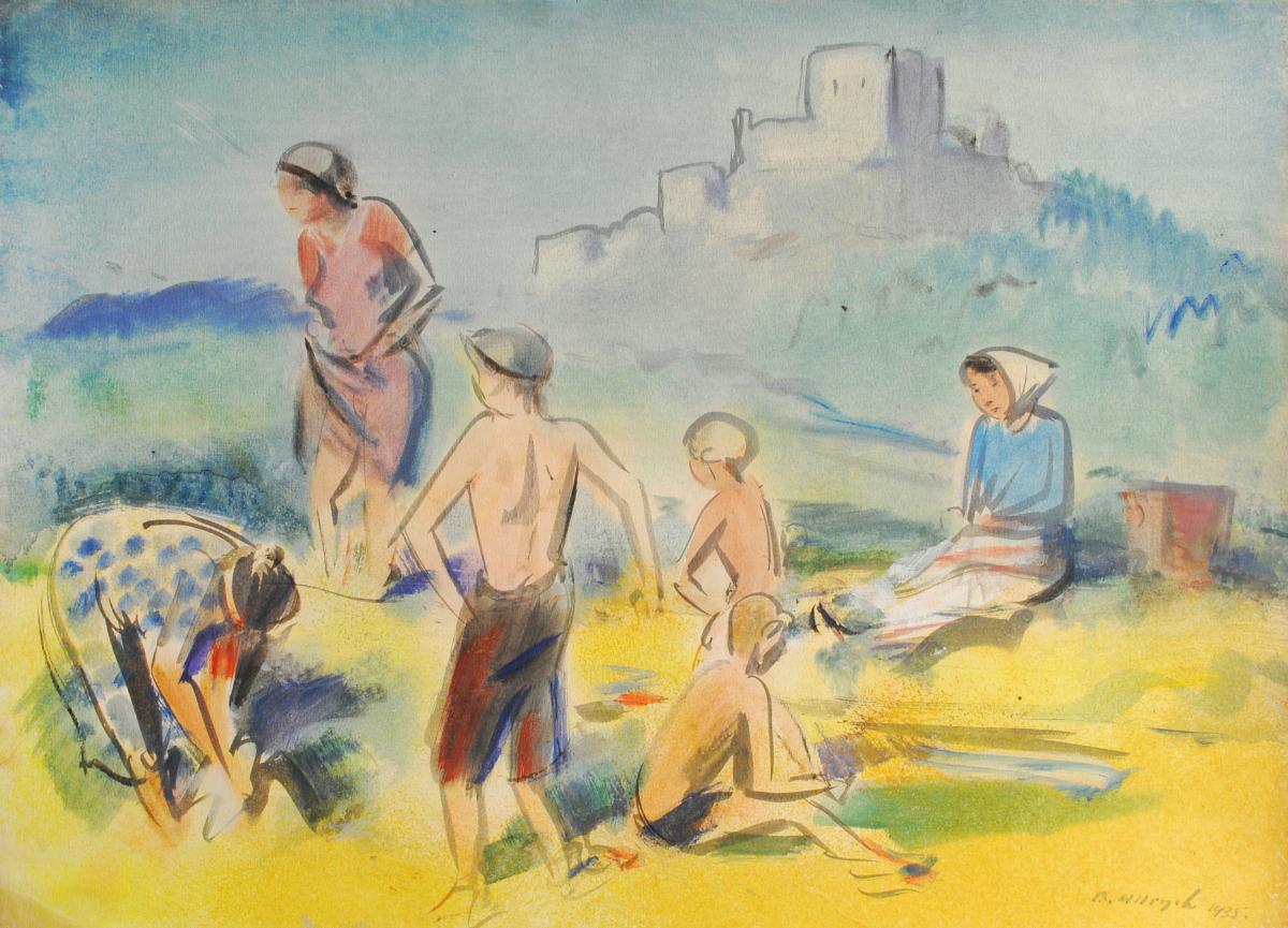 akvarel, papír, 1934, 28 x 41 cm, sign. PD
