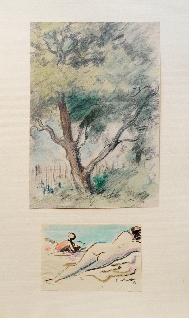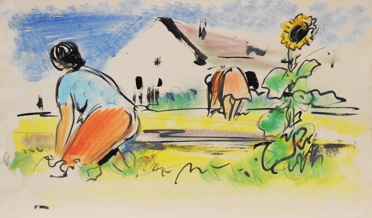 kvaš, papír, 30 x 40 cm, rám, vzadu štítek s razítkem