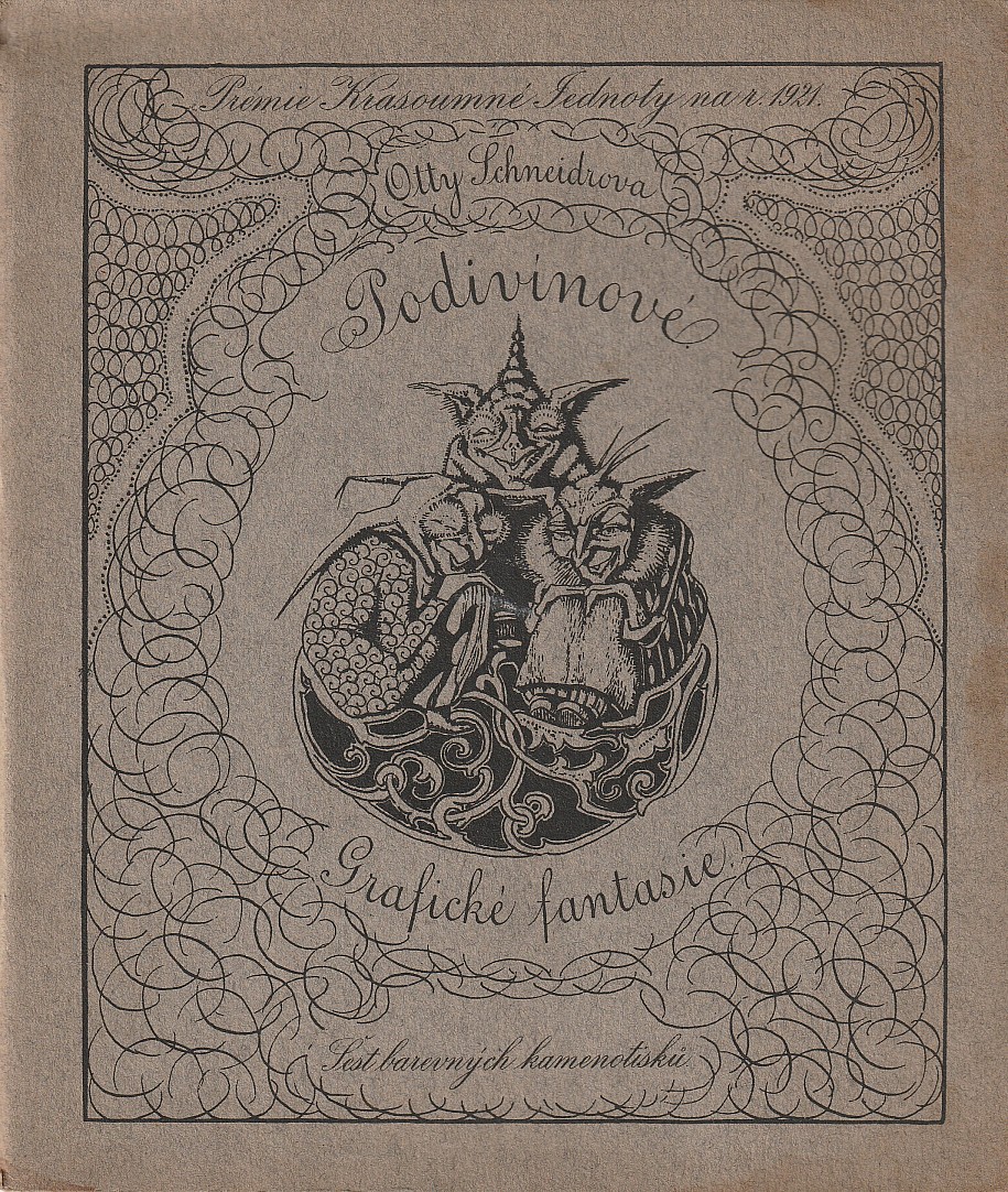 bibliofilie, 21,5 x 18 cm, 6x bar. litografie, album šesti originálních grafik, Prémie Krasoumné Jednoty na r. 1921, listy volně vloženy do desek, stopy polití na deskách, dobrý stav, Provenance: Antiquarian Dlážděná