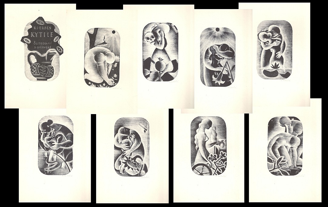 bibliofilie, 8x sign. litografie a litografie na tit. listě D. Bilovská, vyd. Kruh bibliofilů na Moravě, nedat., ex. 61/100, volné listy v pův. ob., jen lehce ušipněná ob., jinak velmi dobrý stav, Aantiqari.at Radhošťská,