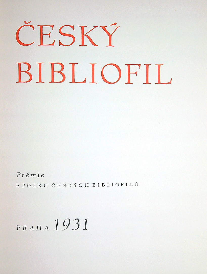 bibliofilie, sign. litografie J. Konůpek, obsahuje typografické ukázky, vydal Spolek českých bibliofilů, Praha 1933, úprava M. Kaláb, vyzdobil K. Svolinský, 500 výtisků, celoplátěná vazba, Provenance: Antiquarian Ostrovní, the disciple of prof. Koula and Schultz, Bukovac and Pirner