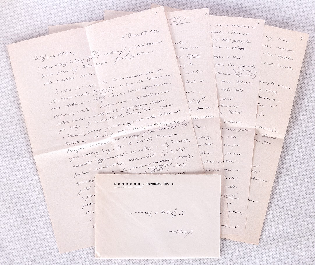 dopis, 1977, 29,5 x 21 cm, Obsáhlejší rukopisný dopis s podpisem z Prahy z 3.1.1977, 4 strany listu. Redaktor, historik umění, kurátor, pedagog. PhDr., DrSc., docent dějin výtvarného umění, znalec evropského barokního umění, monografie z oboru, mj. o Petru Brandlovi., Provenance: Antiquarian Dlážděn…