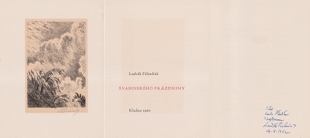 bibliofilie, podpis a věnování L. Páleníček, sign. litografie ve frontispise a kresba na obálce M. Švabinský, vydal Josef Cipra, Kladno 1960, 15 s., brož., velmi dobrý stav, Provenance: Antiquarian Ostrovní