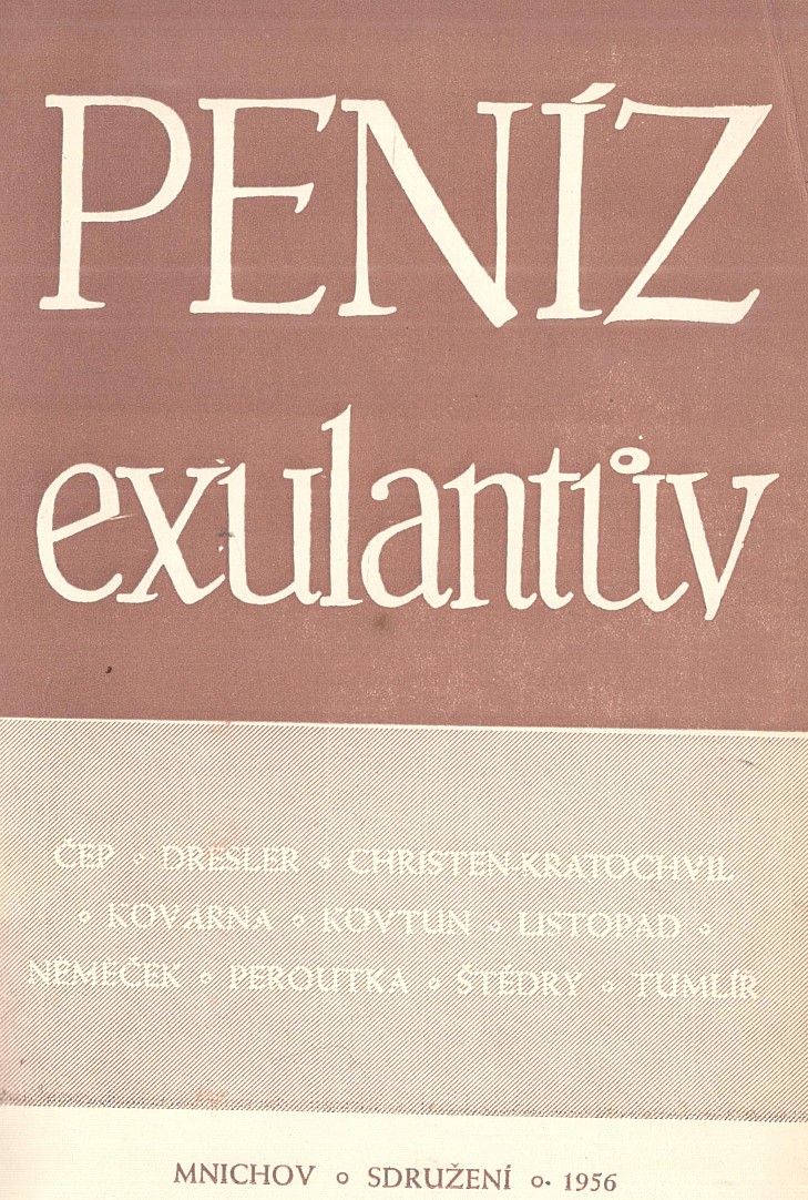kniha, antologie exilové prosy, vyd. Sdružení ČS politických uprchlíků v Německu, Mnichov, 1956, jako III. svazek edice Kamenný erb, sest. Ant. Kratochvíl, obs. texty: J. Čep, Fr. Listopad, J. Kovtun, F. Peroutka, Zd. Němeček, V. Štědrý, J. Tumlíř, J. Dresler (též doslov) a Fr. Kovárna, clpl. převaz…