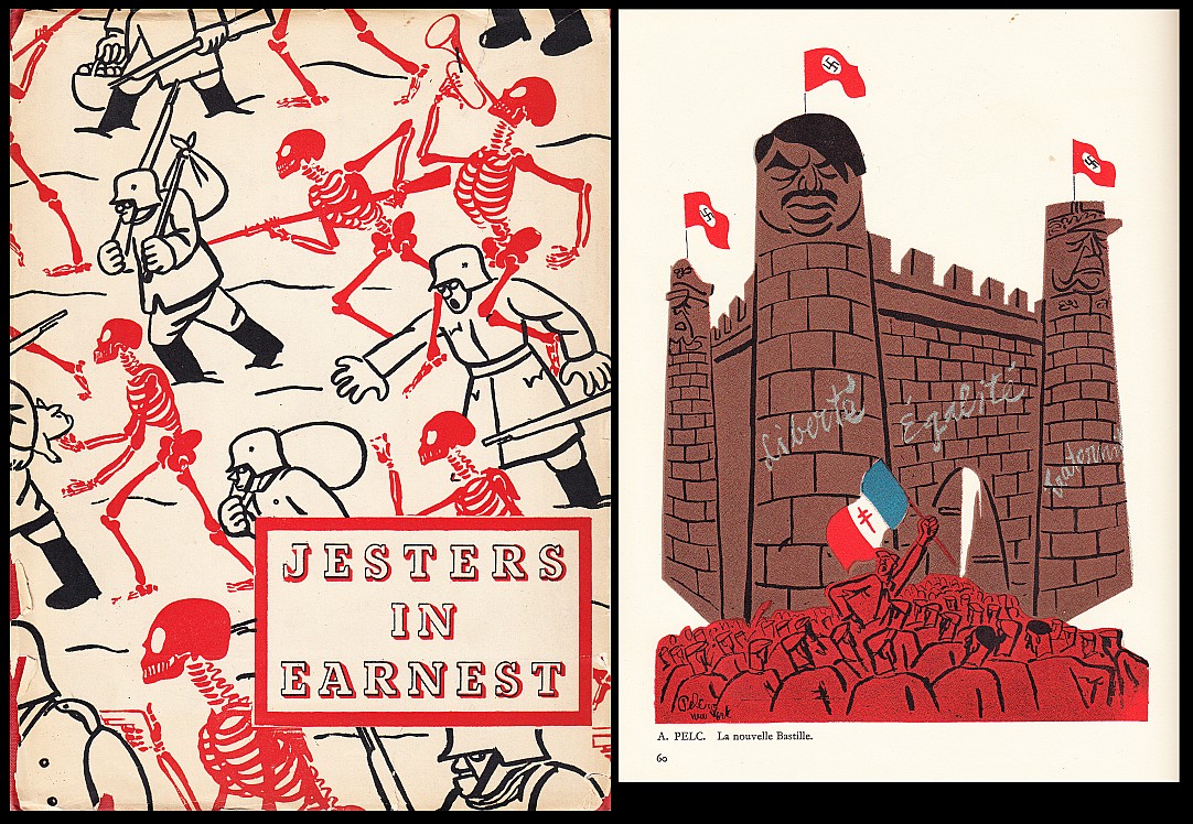 kniha, protifašistické karikatury a kresby pěti čs. výtvarníků, 20 kreseb a koláží A. Hoffmeister, A. Pelc, monogr. Z.K., W. Trier a Stephen, předmluva David Low, ob. A Hoffmeister, vydal John Murray, London 1944, 64s., ob. potrhaná, na hřbetu kus chybí, velmi dobrý stav, Provenance: Antiquarian Ost…