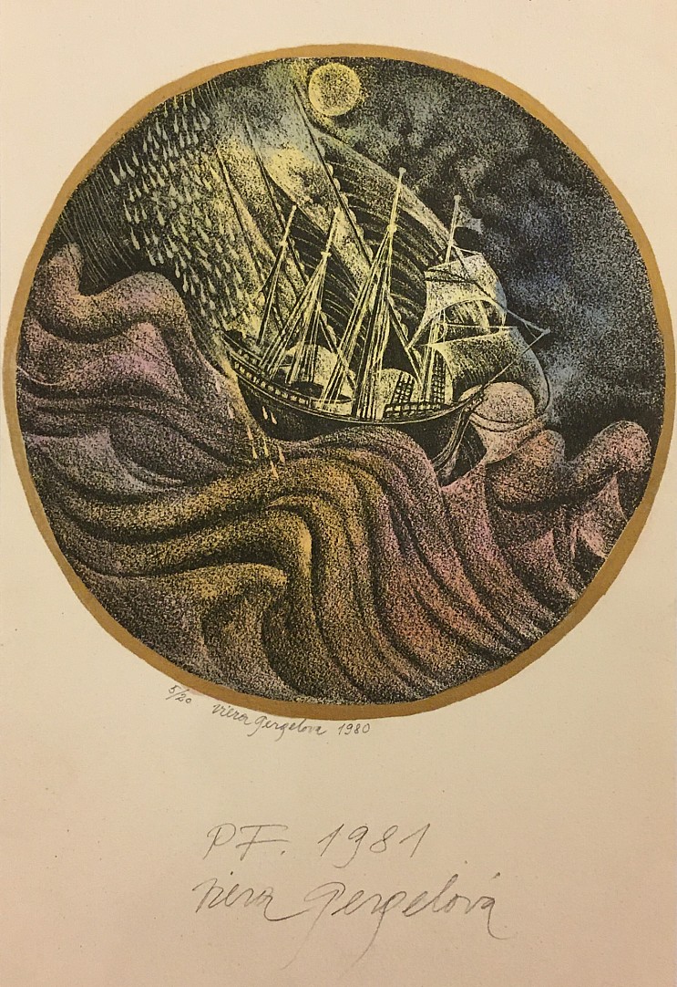 litografie, 1980, 12 x 12 cm, sign. DU Viera Gergelova 1980, č. 5/20