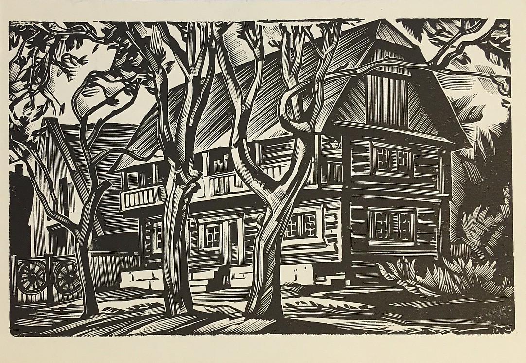 dřevoryt, 25,5 x 17,5 cm, lehce pomačkaný a natržený dolní okraj, the disciple of prof. C. Bouda, O. Blazicek, member of The Royal Belgian Academy, The Manes Association of Fine Artists and The Hollar Association of Czech Graphic Artists, member of the group Sedm v rijnu