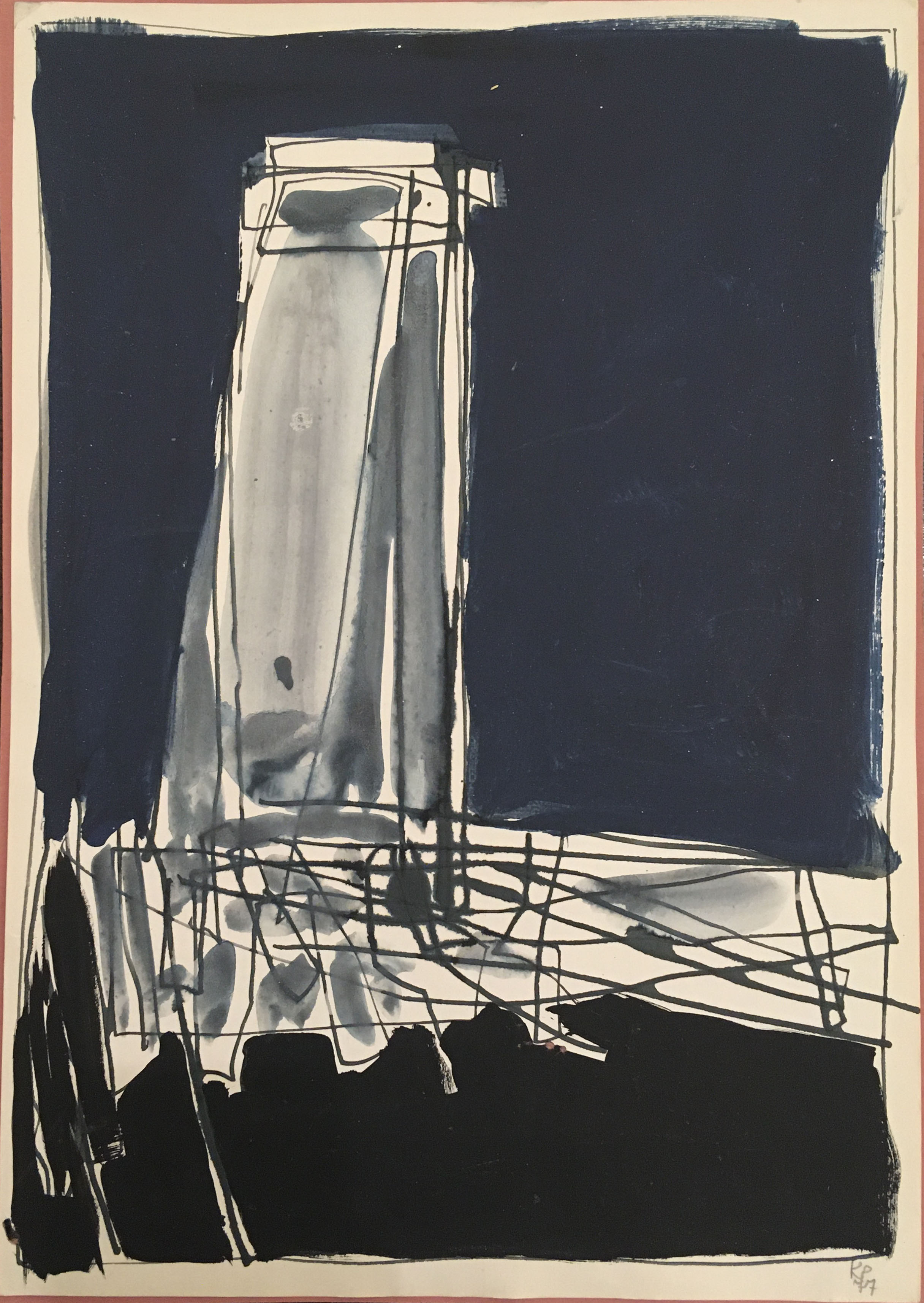 tuš, kvaš, papír, 1977, 28,5 x 20 cm, monogr. PD KP 77, disciple of Prof. G. Singier at École Nationale Supérieure des Beaux-Arts in Paris, later studied at École des Beaux-Arts St. Ouen