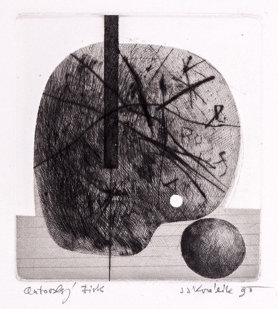 lept, 1990, 12 x 11 cm, sign. PD J. J. Králík 90, A. T., the disciple of Prof. E. Filla, member of the group Bilance, The Umelecka beseda, The Hollar Association of Czech Graphic Artists