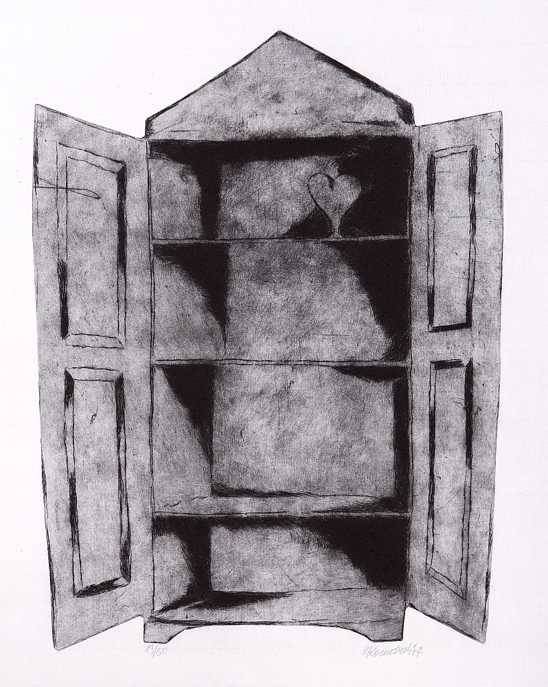 suchá jehla, 1988, 38 x 39 cm, sign. PD Klápště 88, rám, č. 8/20, Provenance: Antiquarian Ostrovní, the disciple of prof. F. Tichy and E. Filla, member of The Hollar Association of Czech Graphic Artists