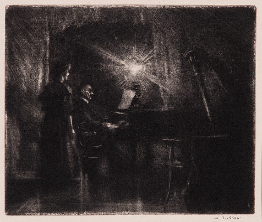 mezzotinta, 25 x 29,7 cm, sign. PD A. J. Alex, Provenance: Antiquarian Dlážděná, studied at The Art College in Prague, the disciple of prof. A. Janek at Academy in Munich and prof. M. Svabinsky at The Academy of Fine Arts in Prague