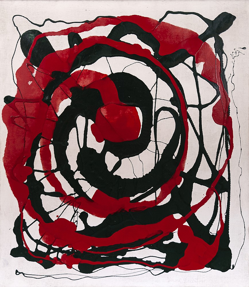 lité laky, plátno, 1989, 110 x 95,5 cm, sign. DU Vincent Venera 1989, rám, Vincent Venera alias Svatý Vincent, narozený 1958 (ve skutečnosti strávil na světě už 2 500 let, přerušovaně počínaje Velkým Třeskem) je excentrický důchodce a mystik, nejvyšší šéf CIA, Venušan a venerolog, virtuóz na kláveso…