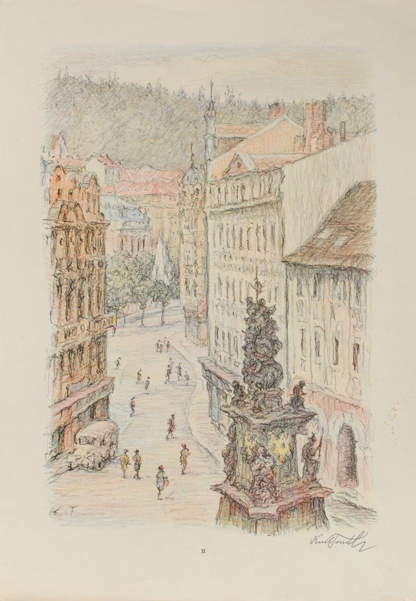 litografie, 26,5 x 18,3 cm, sign. PD Karel Tondl, značeno LD monogr. v kameni K. T. , lehce zažloutlý papír, na pravém okraji lehce ušpiněno, Aantiqari.at Radhošťská, , the disciple of prof. J. Loukota, V. Bukovac, J. Preisler and M. Svabinsky at The Academy of Fine Arts in Prague, studied History o…