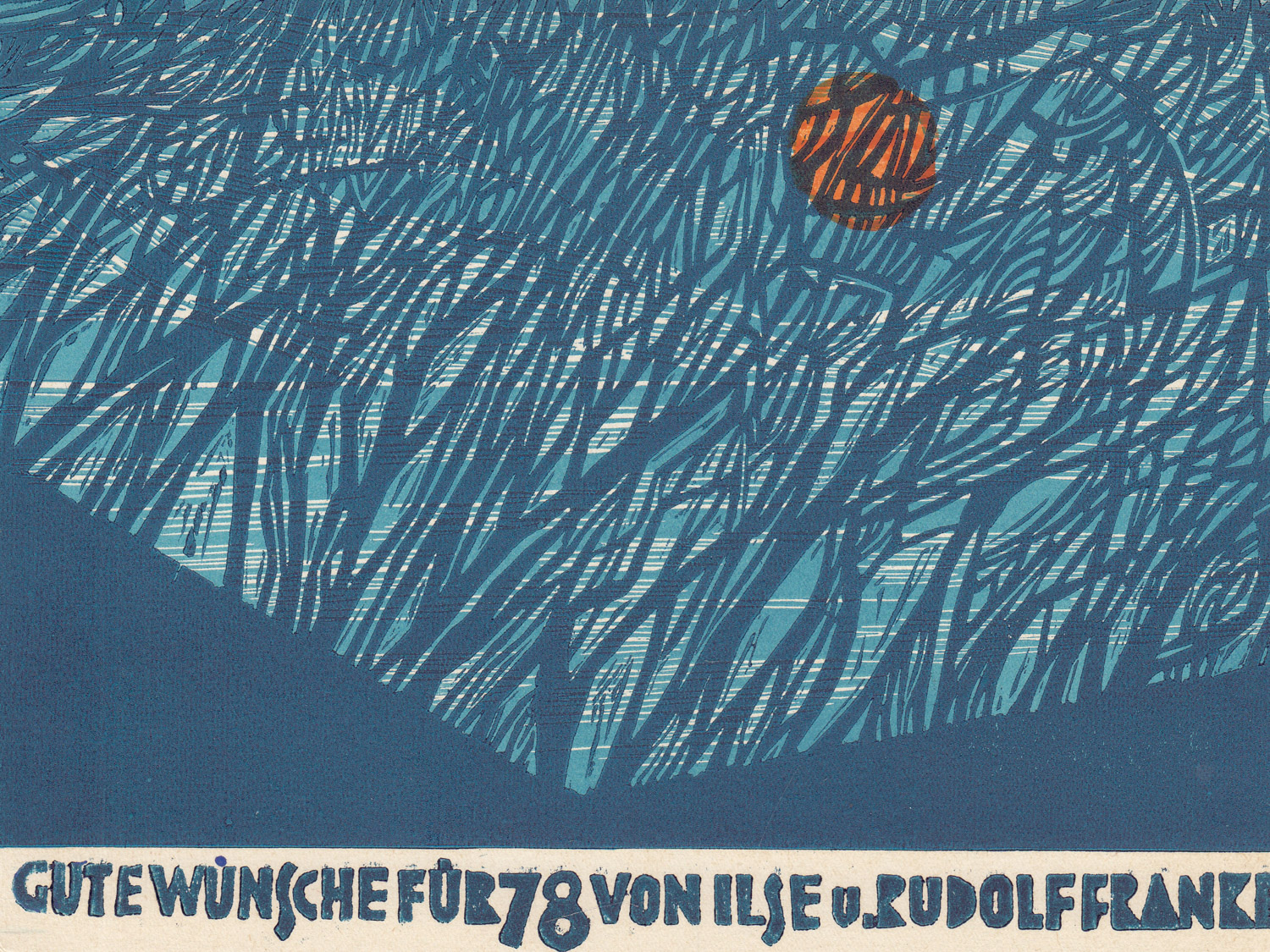 dřevoryt, 1959, 13,2 x 12 cm, sign. PD Fučíková R., přání do Nového roku od tety Gusty (Fučíkové?) z 20. XII. 1959, při okrajích mimo tisk mírně zažloutlý a pokrčený papír, Provenance: Antiquarian Dlážděná