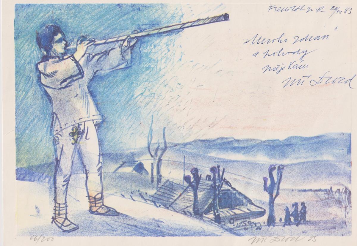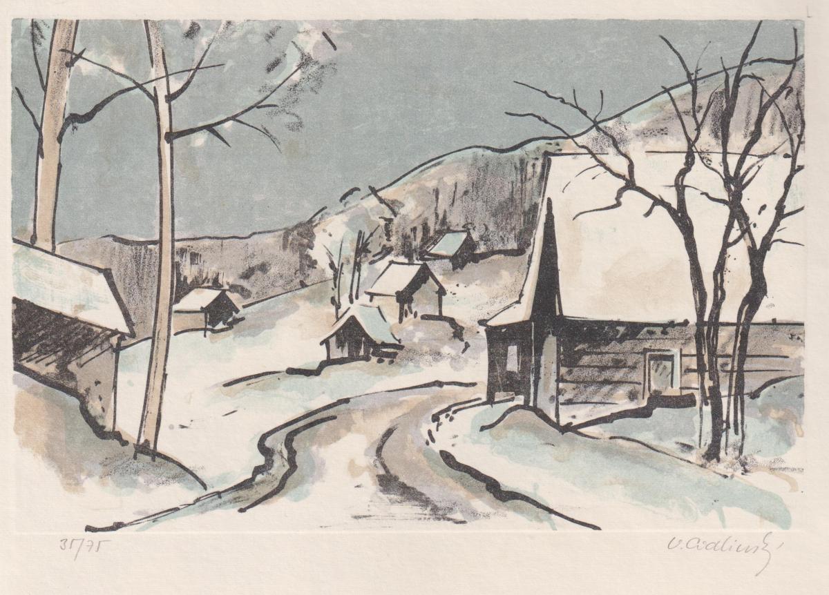 litografie, 1981, 12 x 8 cm, sign. PD F. Emler, č. 87/100, Aantiqari.at Radhošťská, , the disciple of prof. O. Nejedly and V. Pukl at The Academy of Fine Arts in Prague