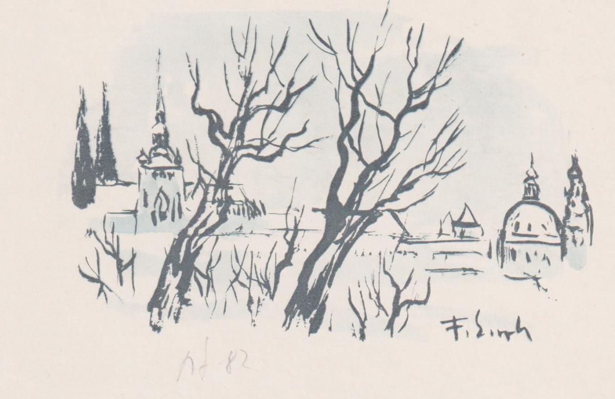 tisk, 1982, 6,5 x 10 cm, značeno v tisku PD F. Emler, Aantiqari.at Radhošťská, , the disciple of prof. O. Nejedly and V. Pukl at The Academy of Fine Arts in Prague