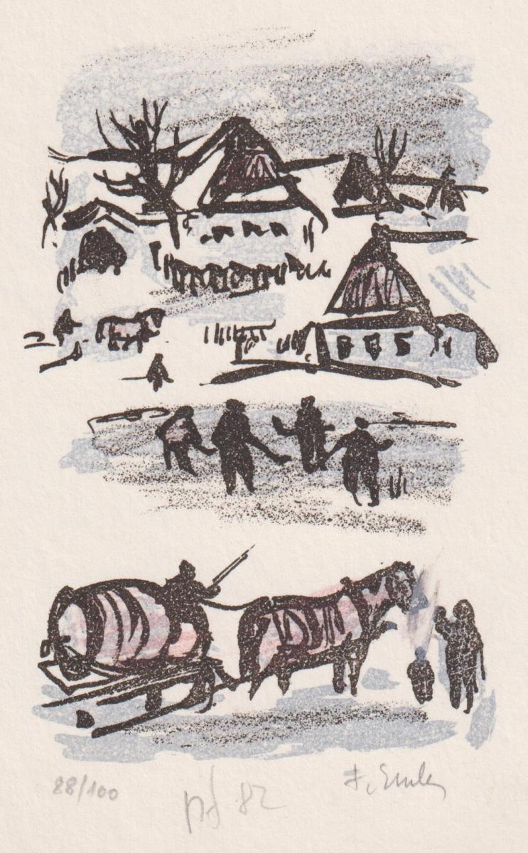 litografie, 1981, 12 x 8 cm, sign. PD F. Emler, č. 88/100, Aantiqari.at Radhošťská, , the disciple of prof. O. Nejedly and V. Pukl at The Academy of Fine Arts in Prague