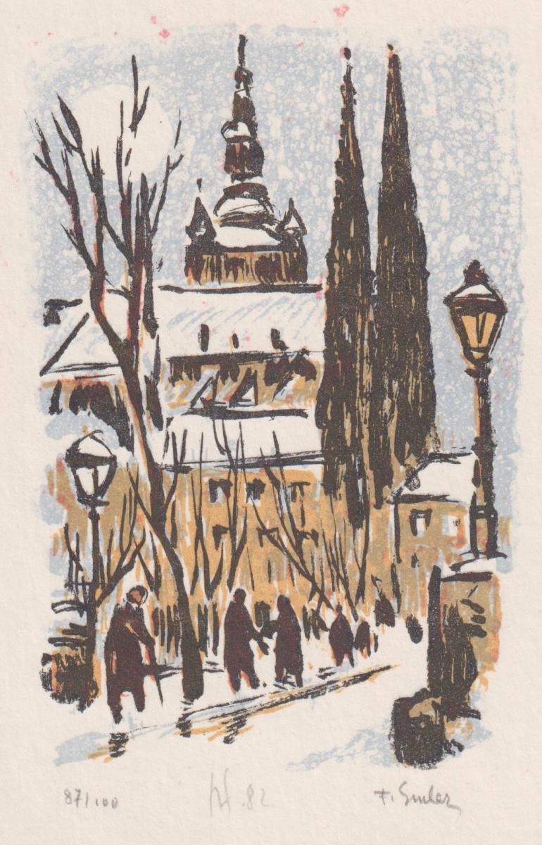 litografie, 1980, 12 x 8 cm, sign. PD F. Emler, č. 5/100, Aantiqari.at Radhošťská, , the disciple of prof. O. Nejedly and V. Pukl at The Academy of Fine Arts in Prague