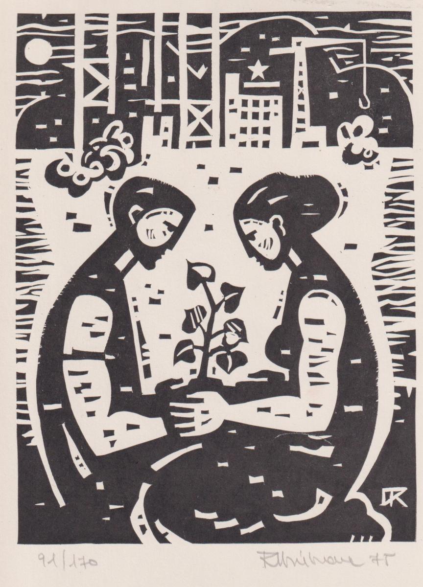 dřevoryt, 1977, 15,5 x 21 cm, sign. na zadní straně R. Franke 77, Provenance: Antiquarian Dlážděná