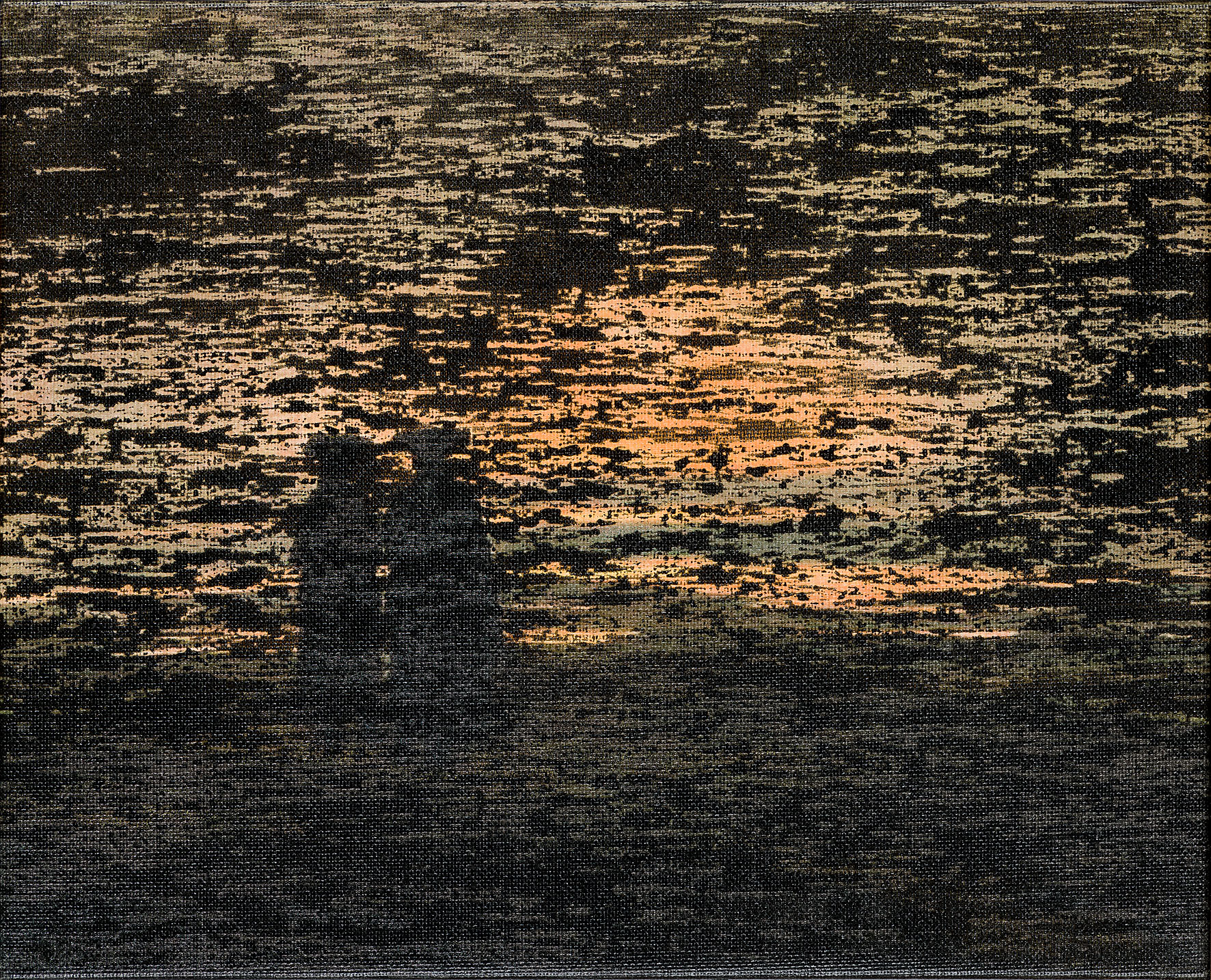 dekonstrukce obrazu Západ slunce Caspara Davida Friedricha z roku 1830, akryl na plátně, 1993–1994, 24 x 30 cm, vzadu