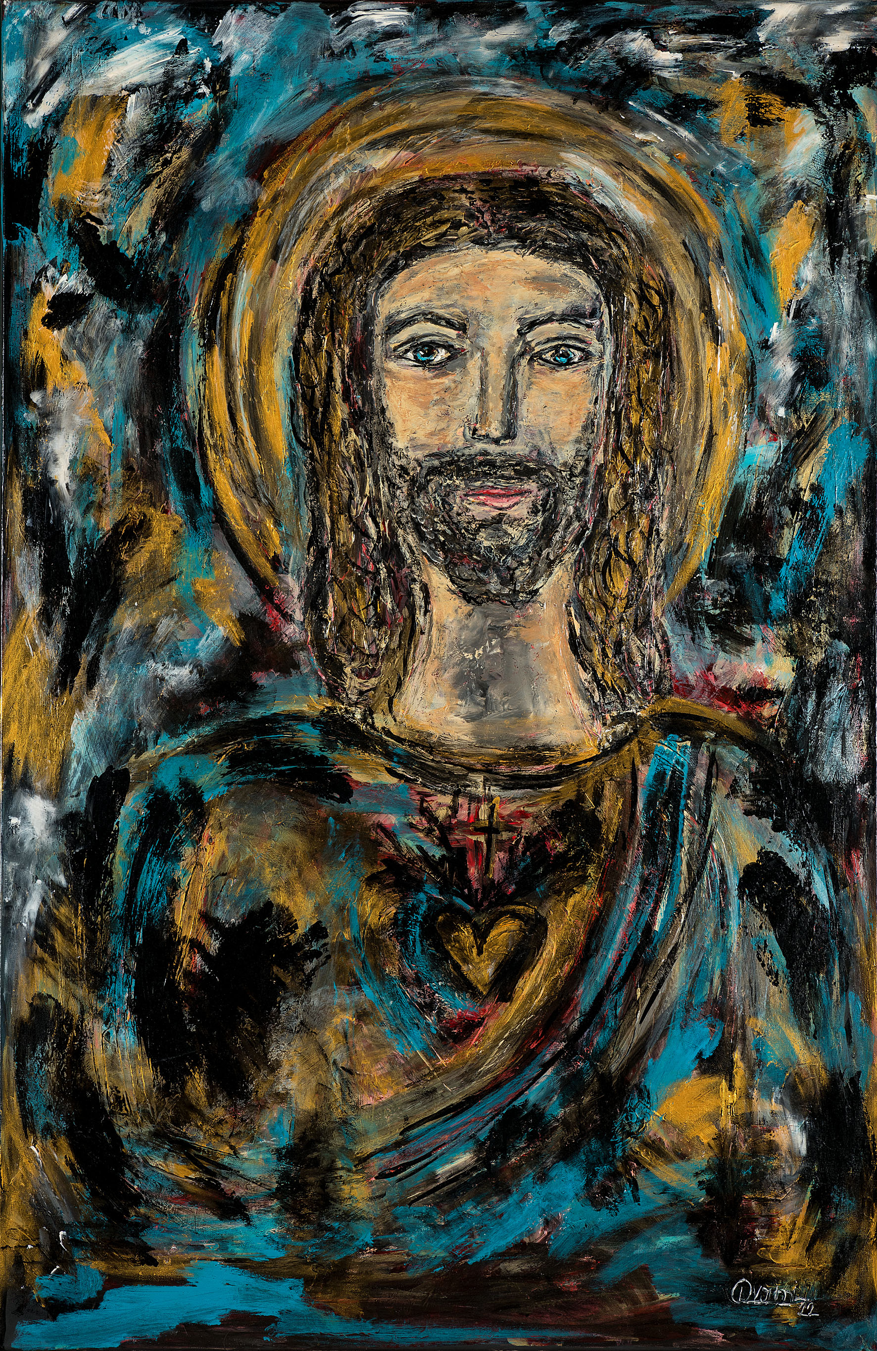 olej a akryl na plátně, malba prsty a štětcem, 2022, 115 x 75 cm, PD