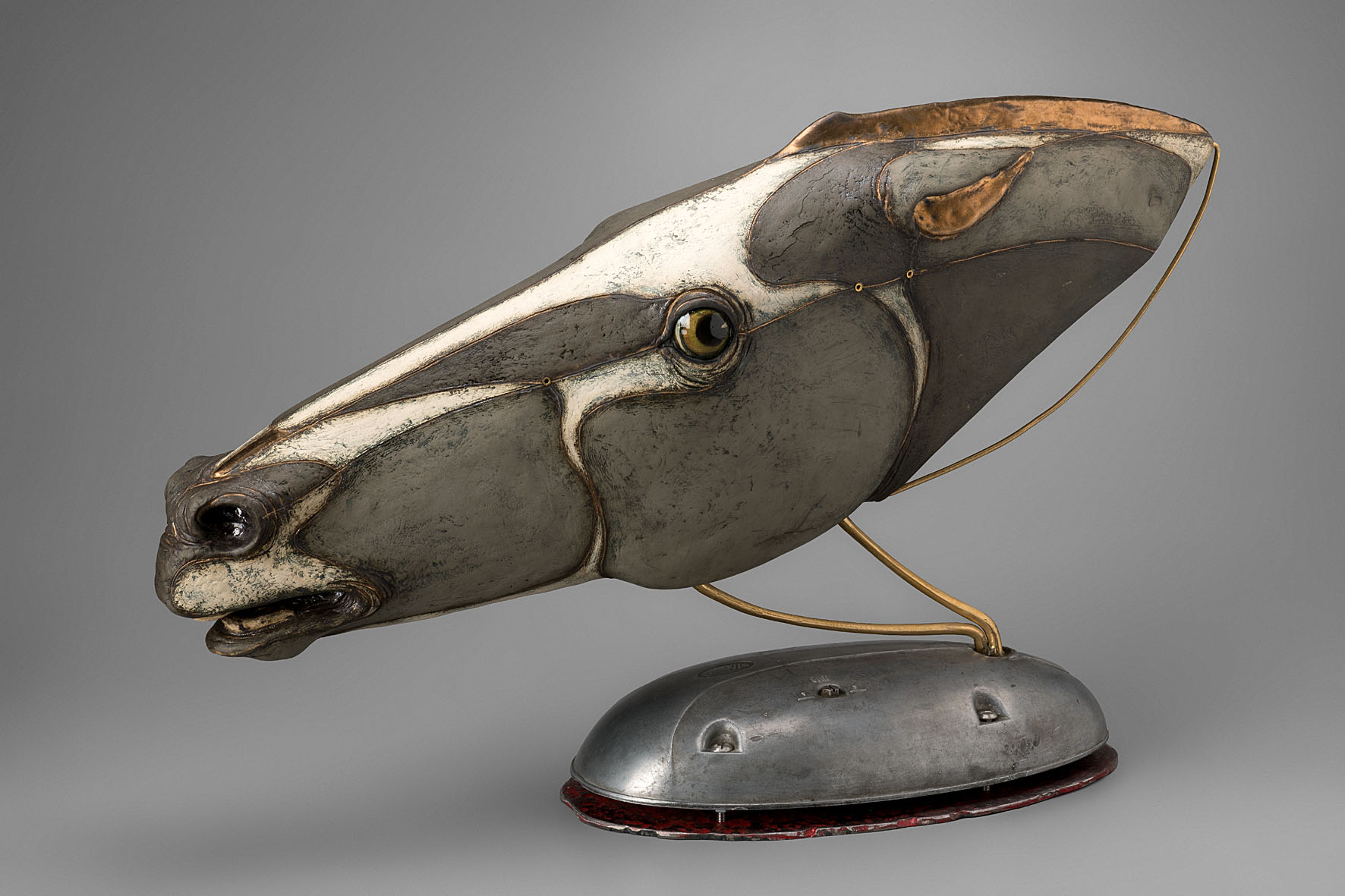 kombinovaná technika, keramika, kov, 2025, v. 45; š. 72; h. 20 cm, autorské razítko