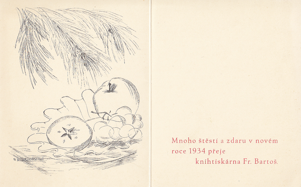 dřevoryt, 1929, 11,5 x 9 cm, sign. PD Vik, Novoročenka Dr. Schieszla na rok 1930, Provenance: Antiquarian Dlážděná, studied at The Secondary Art School of Weaving in Lomnice nad Popelkou, the disciple of prof. R. Ottenfeld at The Academy of Fine Arts in Prague, constituent member of The Hollar Assoc…