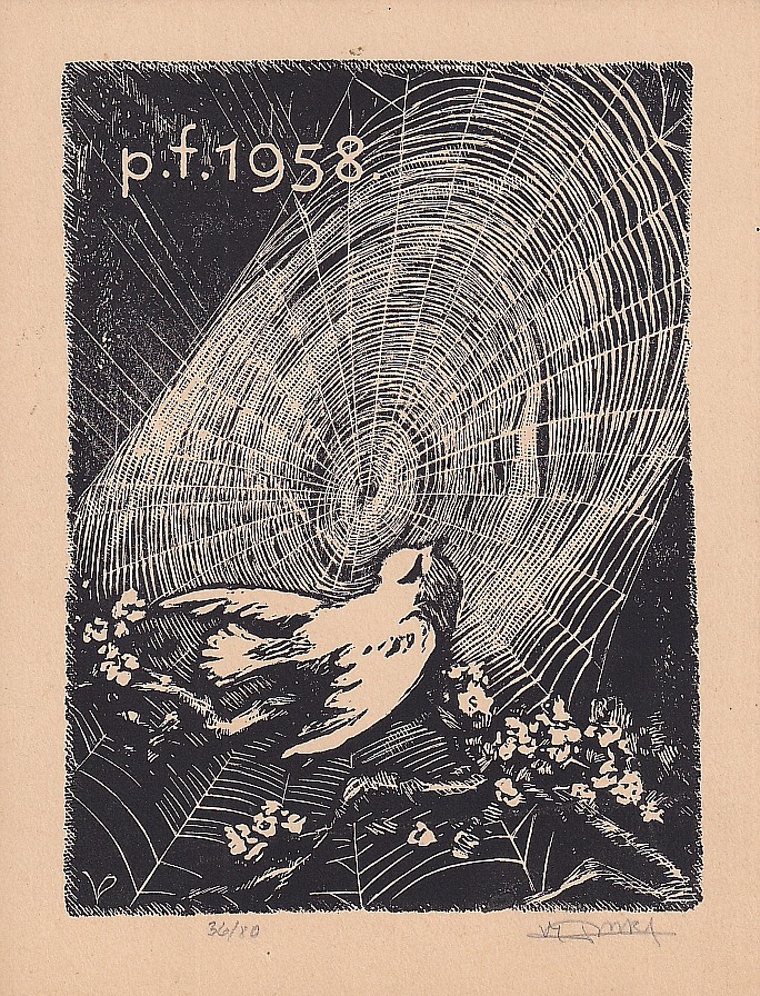 dřevoryt, 1956, 14 x 9,3 cm, sign. PD nečitelně, č. 79/130, PF 1957, Provenance: Antiquarian Dlážděná, the disciple of prof. J. Schusser at The Academy of Arts, Architecture and Design in Prague and prof. T. F. Simon at The Academy of Fine Arts in Prague, member of The Hollar Association of Czech Gr…