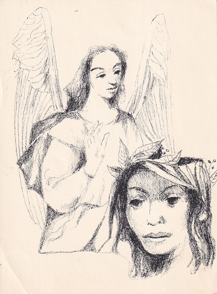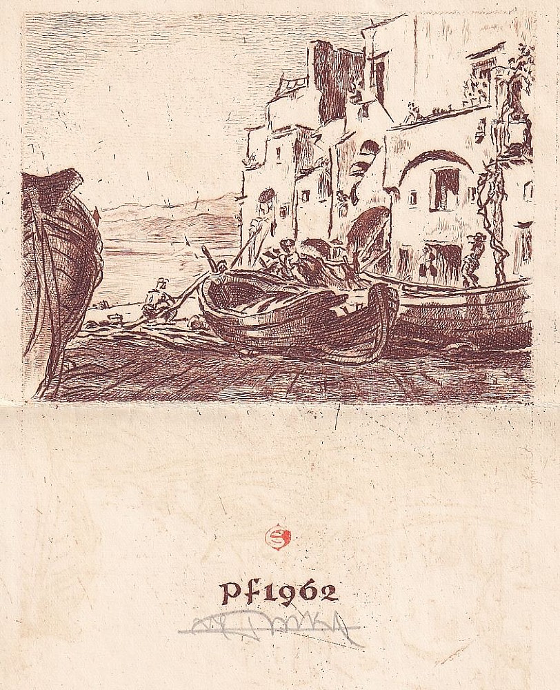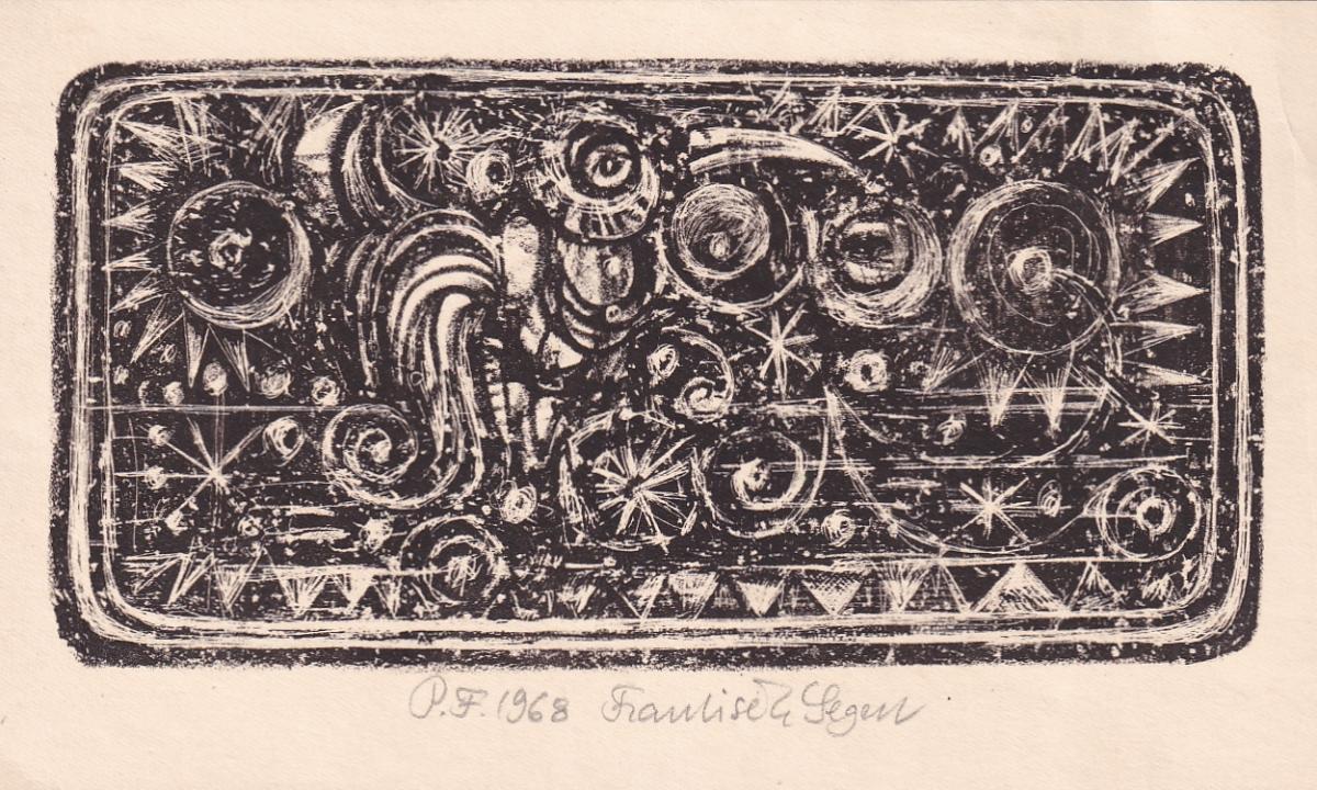 litografie, 1984, 7,5 x 5,5 cm, sign. PD P. Oriešková 84, na zadní straně přání od autorky, Aantiqari.at Radhošťská, , disciple of prof. O. Eckert at The Academy of Arts, Architecture and Design in Prague