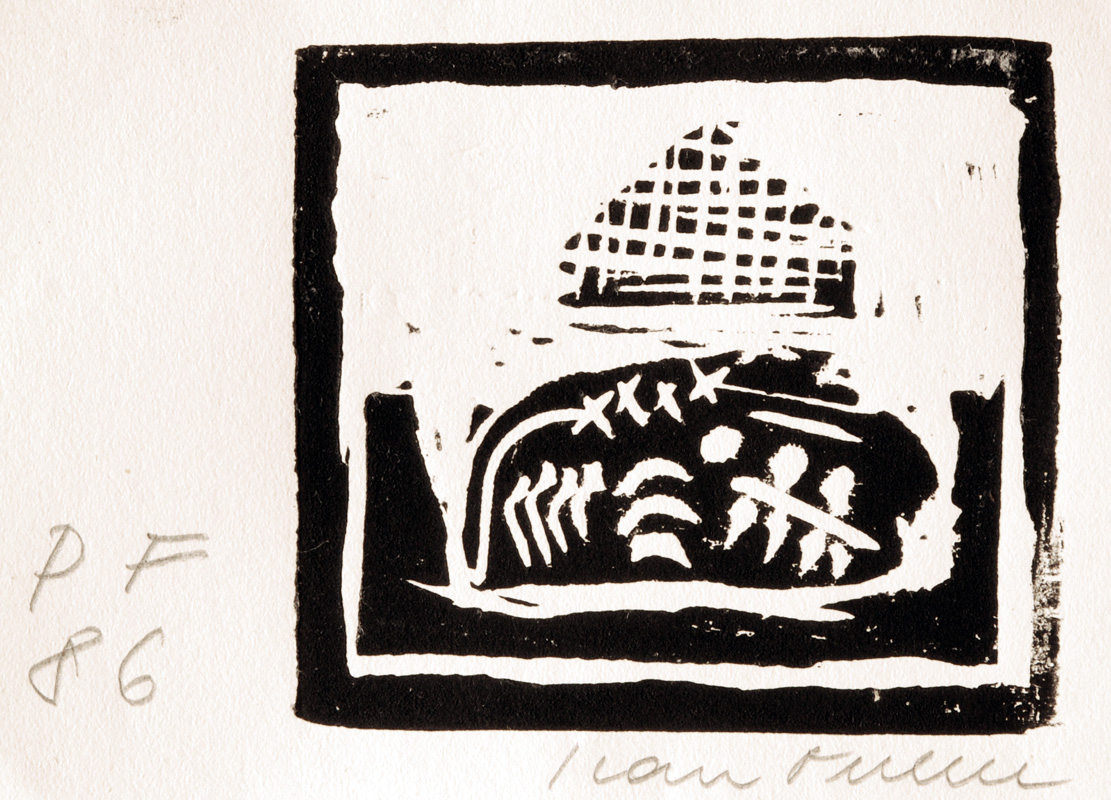 linocut, 1985, 9,3 x 10,3 cm, sign. RD Ivan Ouhel, PF 86, Provenance: Antiquarian Dlážděná, the disciple of prof. Soucek, member of Volne seskupeni 12/15, Still even late, member of The Umelecka beseda