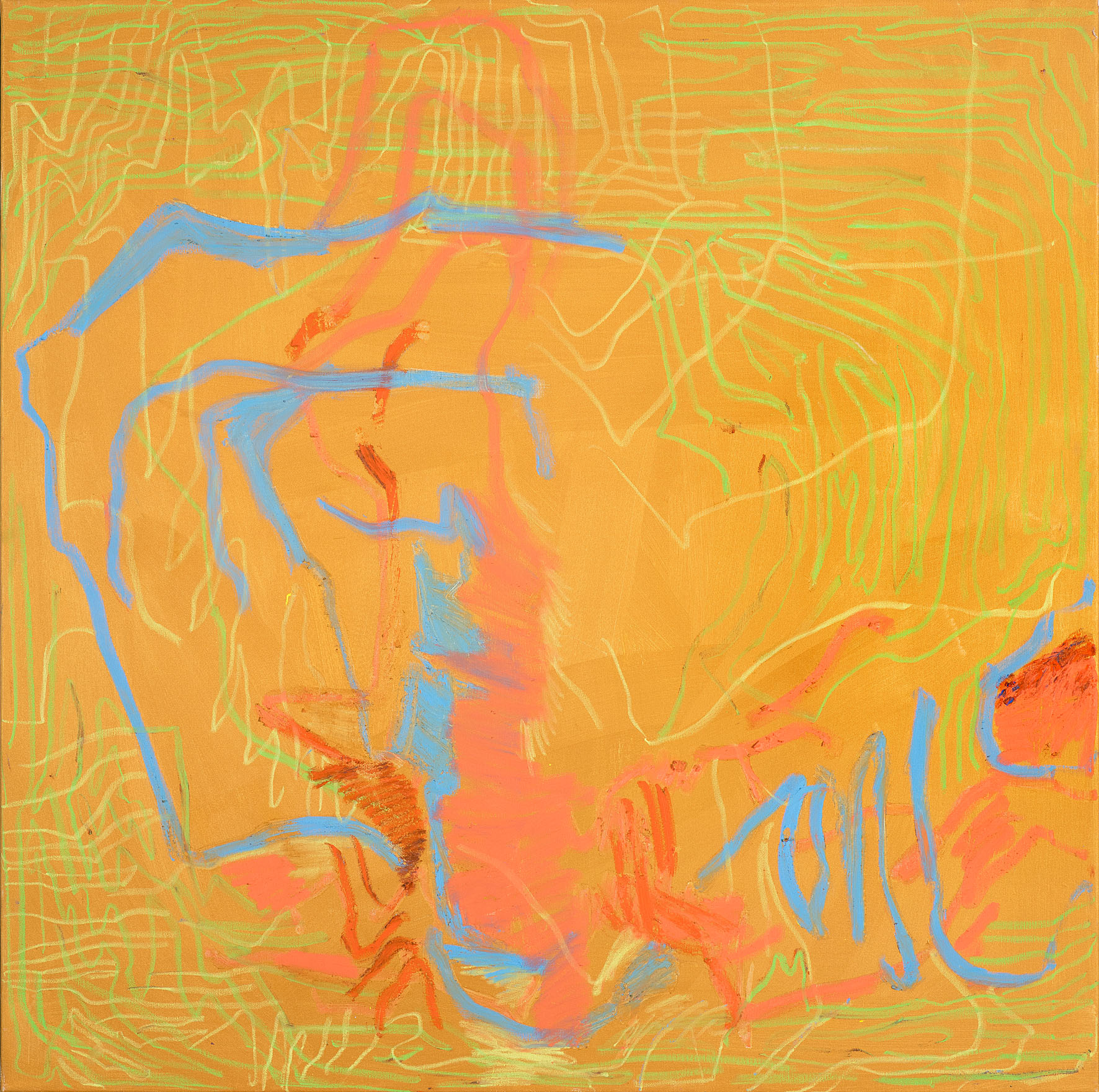 akryl a olejový pastel, 2025, 100 x 100 cm, vzadu