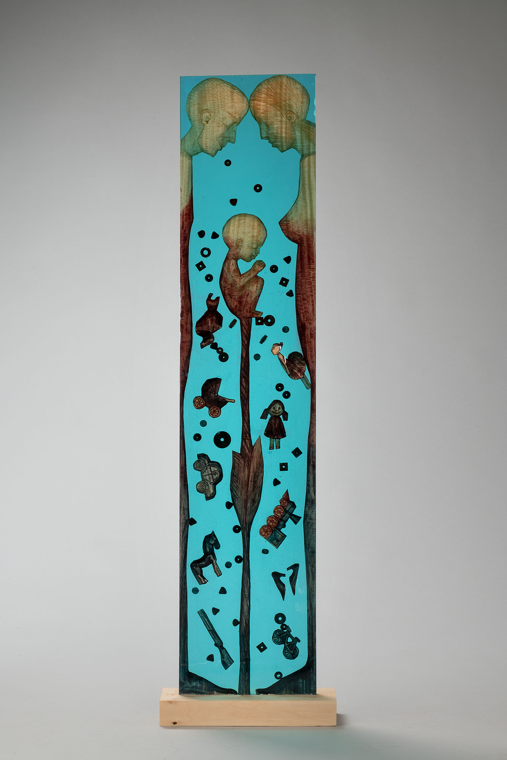 řezba z lipového dřeva s pryskyřicí, 2025, 155 x 23 cm, na soklu
