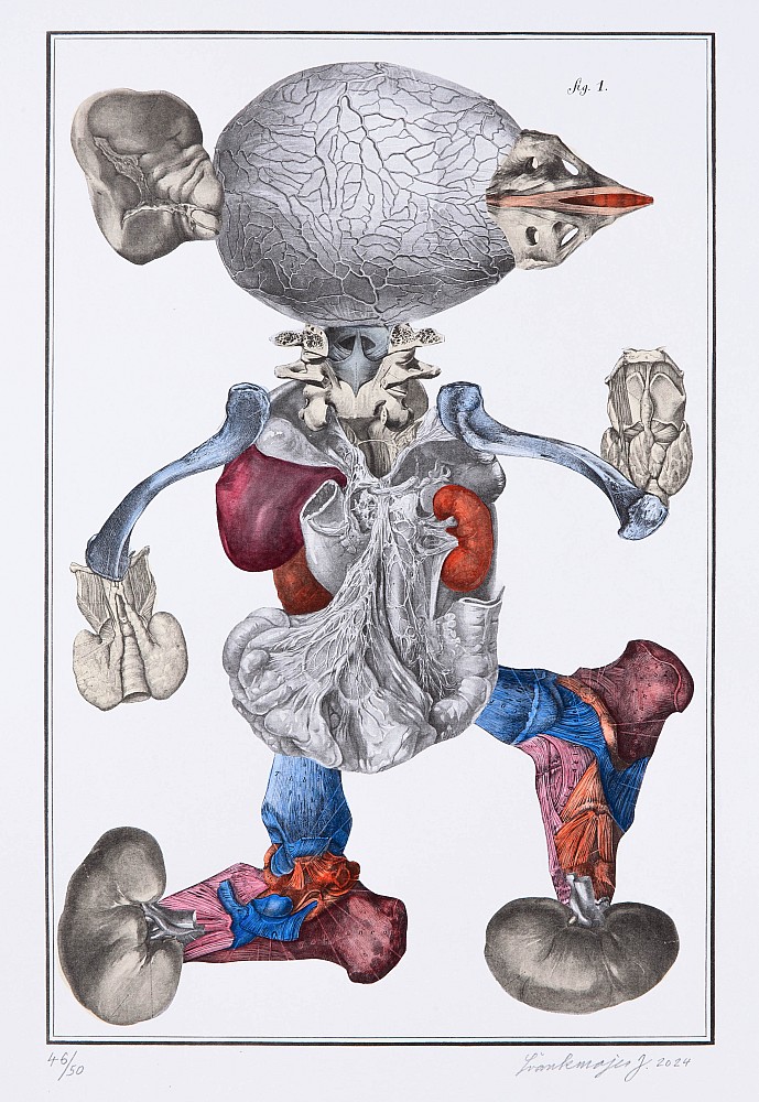 litografie, ručně kolorovaná , 2024, 43,2 x 28,2 cm, sign. PD Švankmajer J. 2024, rám, č. 46/50, studied at The Tertiary School of Applied Arts in Prague, the disciple of prof. R. Lander at The Depatment of Puppetry at The Theatre Faculty of the Academy of Performing Arts in Prague, member of The Su…