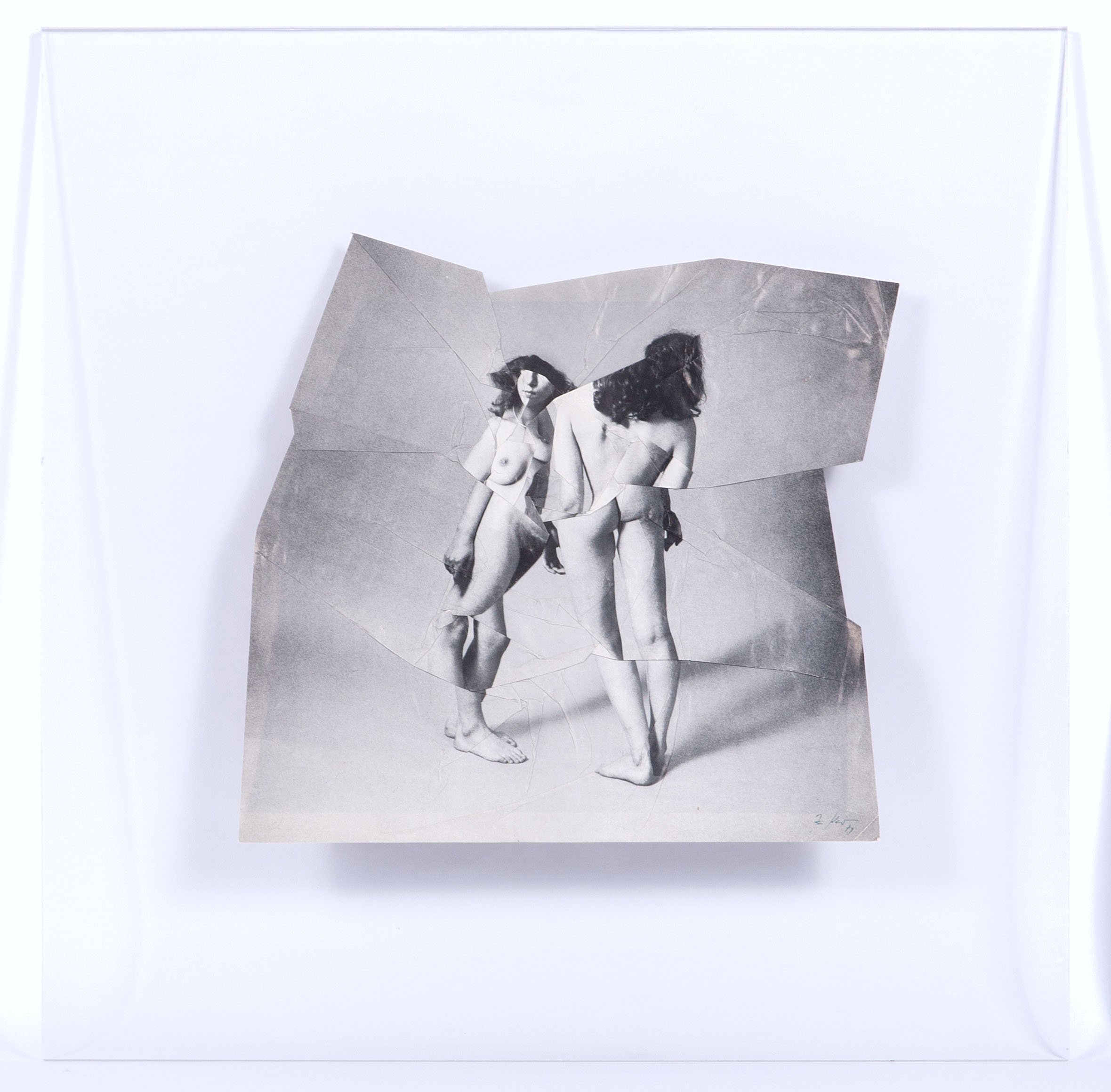 muchláž, 1979, 25 x 27,5 cm, sign. PD J. Kolář 79, adjustováno v plexiskle, básník s neobyčejnou tvůrčí invencí a autor experimentální poezie, přenesl písemné sebevyjádření do zcela unikátní vizuální podoby. Klasický psaný projev dokázal posunout až na jeho samé hranice. Neustále vyhledával nové tvů…